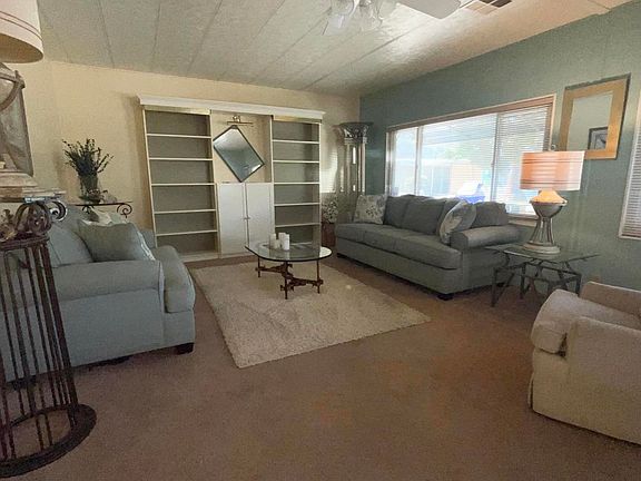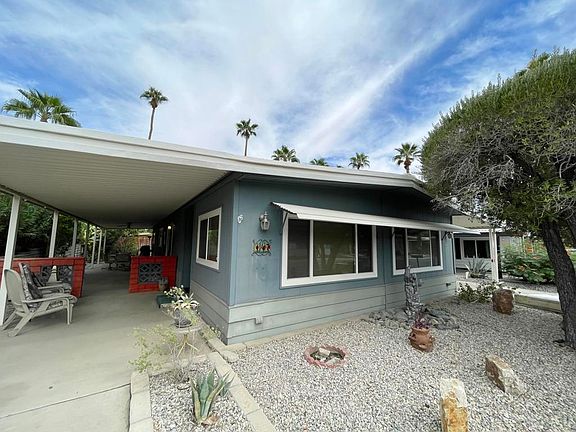 Discover the potential of this 2 bed, 2 bath mobile home nestled within the charming Date Palm Country Club. This spacious 1584 sq ft property is attractively priced for a quick sale. Enjoy the abundance of natural light through dual-pane windows in the inviting front living room, offering peekaboo mountain views. Sold furnished and 'as is,' this property is a blank canvas awaiting your personal touch. With some TLC, transform this space into your very own cozy desert retreat. The backyard has mature landscaping, ensuring privacy and offering an opportunity to create your ideal outdoor living space.