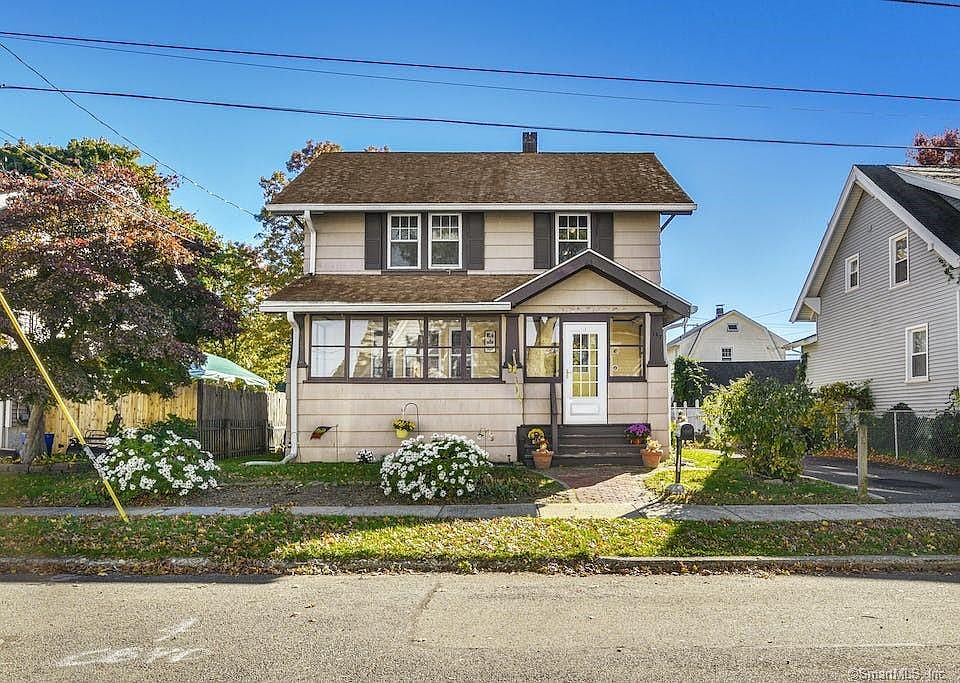 Settle right into this charming 1918 colonial with high ceilings and hardwood floors throughout the main level. Foyer entry with slate floor, spacious living room, formal dining room, 1/2 bath and bright updated kitchen complete the main level. The second floor features 4 bedrooms and a full bath. Full basement for storage, deck, fenced in rear yard and off street parking. Updates include oil tank (2+ years), water heater (3+ years), roof (2006/2007), new gutters/gutter guards, replacement windows and paved driveway. Property is in a flood zone (annual $1029.00). Property will not qualify for FHA due to some peeling paint on steps and rear deck and shingles on house.