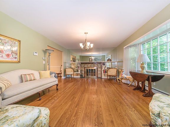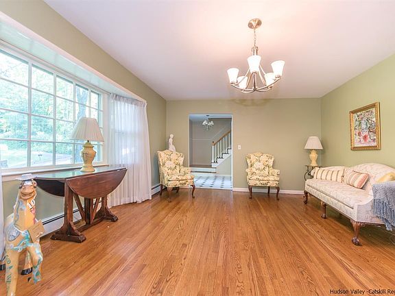 Priced to Sell !! Spacious and Gracious two story offers flowing floor plan, perfect for family living. Enjoy the roomy eat in kitchen which opens to the large family room ideal lay out for entertaining. Living room offers bay window and wood burning fireplace with Portuguese hand painted tile surround, formal dining room, powder room and bright and airy three season Florida sun room plus 35 x 16 deck complete the downstairs layout. Upstairs you will find the luxurious master bedroom suite with 4 year old bath, double sinks, granite counters, walk in shower and heated marble floors. Additional 4 bedrooms, one currently being used as an office, plus full hall bath. Bonus of full kitchen with separate entrance in basement just the right layout for catering. This comfortable and roomy 5 bedroom home is situated on 1+ acres, convenient to Uptown Kingston and walk to golf, tennis, and pool at the Wiltwyck Club.