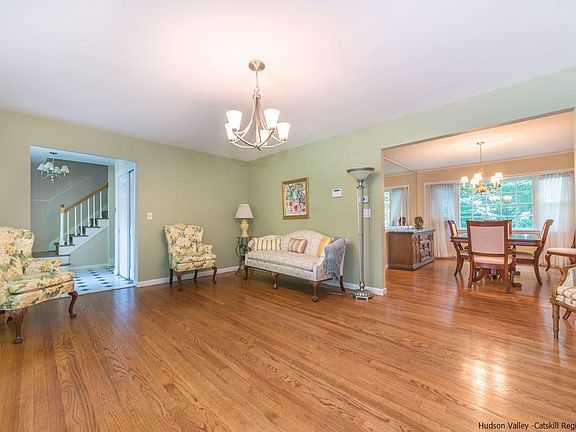 Priced to Sell !! Spacious and Gracious two story offers flowing floor plan, perfect for family living. Enjoy the roomy eat in kitchen which opens to the large family room ideal lay out for entertaining. Living room offers bay window and wood burning fireplace with Portuguese hand painted tile surround, formal dining room, powder room and bright and airy three season Florida sun room plus 35 x 16 deck complete the downstairs layout. Upstairs you will find the luxurious master bedroom suite with 4 year old bath, double sinks, granite counters, walk in shower and heated marble floors. Additional 4 bedrooms, one currently being used as an office, plus full hall bath. Bonus of full kitchen with separate entrance in basement just the right layout for catering. This comfortable and roomy 5 bedroom home is situated on 1+ acres, convenient to Uptown Kingston and walk to golf, tennis, and pool at the Wiltwyck Club.