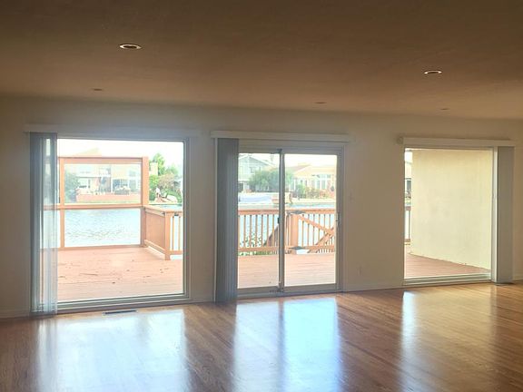 Remodeled! This beautiful single-level, 3 bedrooms, 2 bath home with spacious deck has gorgeous wide water views, is walking distance to Brewer Island Elementary School and conveniently located near shopping, parks and many employers (e.g. Visa, Gilead and Oracle). Relax on the large outdoor deck or entertain in this beautiful setting on the famous lagoons of Foster City. Private dock off of the back deck allows you to launch your boat for cruising the lagoons. This home has been renovated with an open concept kitchen that includes a double oven that will allow you to release your inner creative chef. A completely remodeled hall bathroom with a beautifully updated master bath. Refinished hardwood floors throughout the house. New window coverings in the main living areas and new appliances. Call today to arrange a viewing. Tenant is responsible for all utilities. Non-Smoking.