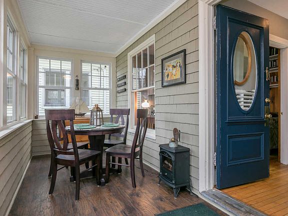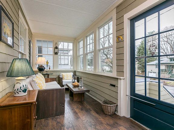 Quintessential Bungalow Charm in one of Portland's most sought after neighborhoods is this 3 bedroom & 2 full bath home with a garage.Kitchen has been tastefully updated with an expansive Corian counter, tile, and newer appliances and flows into the dining area. A wonderful 3 season enclosed porch with 2 large antique glass picture windows will catch the light as you enjoy your morning coffee. The 2nd floor has 2 spacious bedrooms, each can easily accommodate a king size bed and the 3rd bedroom is currently used as a den. Newer high-efficiency boiler and added spray foam insulation will make heating costs minimal. Hardwood floors, wood stove, back deck and a garage built in 2008 round out the package in a location convenient to all Portland has to offer. OPEN HOUSE SATURDAY, April 20 12:00-2:00