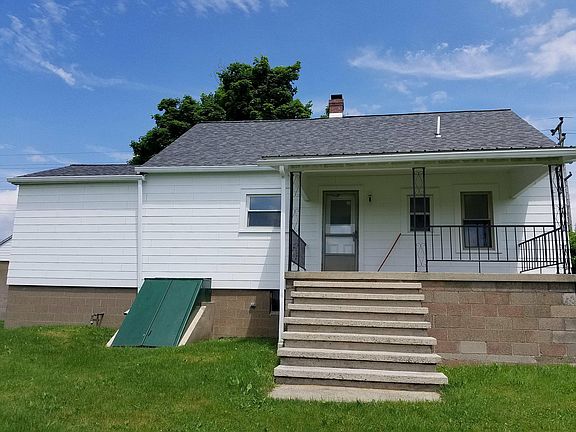 This house was built by my Dad and is a great country house surrounded by farmland. The house and detached garage were re-roofed a year ago. The detached garage has a new garage door. The house has a full basement with several storage cabinets and a shop area at one end. The house has been painted inside and out. The bedrooms on the first floor have had their hardwood floors refinished. The floors in the bathroom, kitchen, and dining room have been replaced (see photos). The bathroom toilet is brand new, as are the refrigerator and stove hood. There is a counter top microwave. The gas furnace is only a few years old. The electric stove and water heater are in good shape, but not new. The house would be great for a young family or retired couple with plenty of land around the house to have a garden, add on to the house, or build a bigger garage. The third bedroom is upstairs with adjacent attic storage space. The rear concrete porch has storage underneath and the detached garage has a lean-to for additional storage. There is a storage shed in the front yard for your lawn equipment. It has a large maple tree in the front yard for shade in the summer, when you sit out at night. This was a great house to grow up in and I know you will love it too.