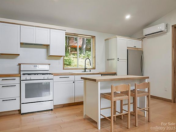 Surrounded by nature,  this  custom-designed, eco-friendly home features an open floor plan, hardwood floors, and tons of natural light. Relax on the spacious covered front deck overlooking the wooded lot which is a certified Wildlife Habitat.   Newer construction green features include spray foam insulation, tankless hot water heater, mini-split heat pump, direct vent heating stove, conditioned crawl space, and whole house water filtration/sterilization.  No restrictions on the 1 acre lot but no short term rentals per town of Woodfin ordinance amendment last November.  Perfect for an urban homestead - currently set up for gardening, chickens and goats.   30 amp RV power and water hookup.  Driveway is short and steep -Prius makes it up problem.    Downtown Asheville is just a short drive and you will be minutes from the proposed Woodfin whitewater park and greenway!