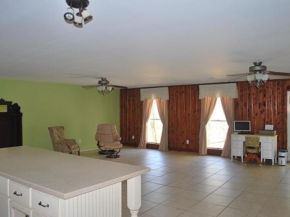 Unique two level home built partially underground. Extensive rock walls around the property. Upstairs has kitchen w/ beautiful cabinet & Corian countertops, open to living room, master bedroom. Laundry room, Sunroom. Downstairs has kitchen & 2nd bedroom, large underground room w/ rock wall & details, & storm room.2 carports,2 concrete driveways