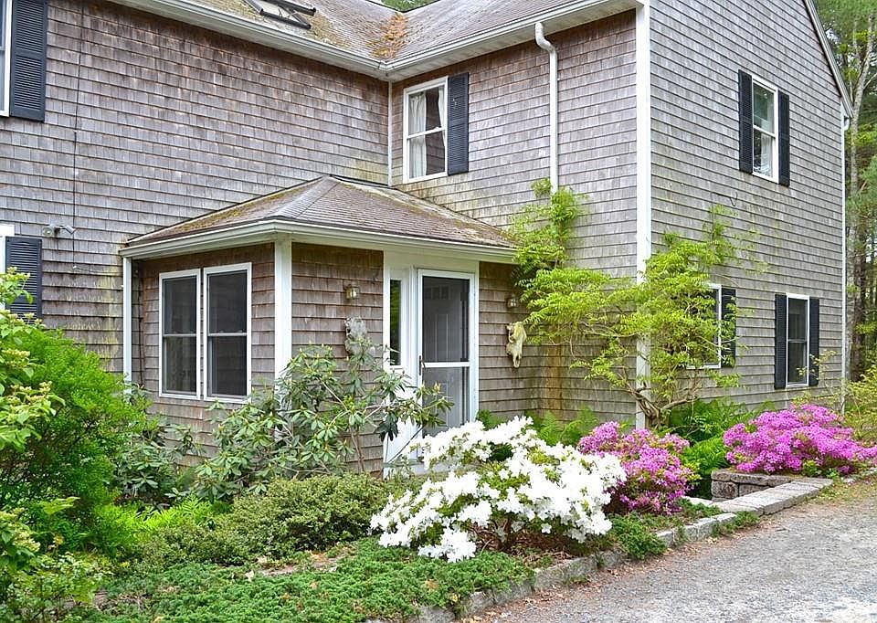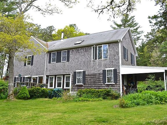 Come take a look! A very private setting on two acres of land, this lovely 9 room, 5 bedroom, 3 bath home is set back off the road; close to beaches, nearby walking & bicycle trails leading you to the ocean. Huge yard full of beautiful perennials, deck, shed, outside shower; scenic views from the back of the house overlooking a large cranberry bog. Mudroom, first floor bedroom possibility, office, living room with wood stove, eat-in kitchen, bathroom/laundry room and bonus room. Lots of windows across the back of the house to enjoy the ever changing views. Second floor master bedroom/bath plus three additional bedrooms and bath. Potential for first floor bedroom. New 50-year architectural shingle roof, new gas furnace 2019. This home has been updated over the years; town water and Title V. Nice common areas for family enjoyment and plenty of individual spaces to retreat. Carport. Includes all kitchen appliances, washer, dryer & wood stove. So much potential to make it your own!