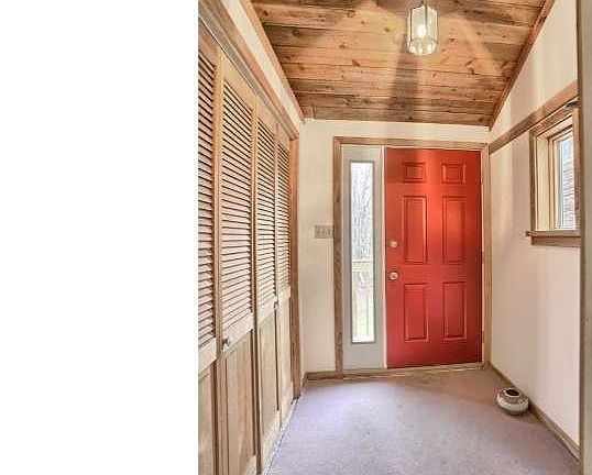 A true custom built contemporary home, built by the builder himself. He positioned the home to optimize energy efficiency. While the home has electric baseboard heat, the home has been primarily heated with the coal stove in the great room that radiates throughout the home. In the cool months, the energy efficient replacement windows keep heating costs low and in the warmer months the opened windows allow for a comforting breeze. This home is immaculate. Everyone that visits loves the tile that welcomes you and leads you to the kitchen that is designed for pure cooking enjoyment. The master suite has a HUGE walk-in closet. This home just fills up with beautiful natural light. The 3.93 acre property has everything one could want, open sun for a garden,a wooded area, and even a clearing surrounded with trees that is perfect for a fire pit. The detached over-sized two car garage with a complete second story with electric, perfect for a studio or hobbyist.