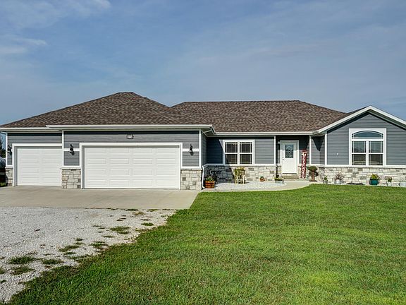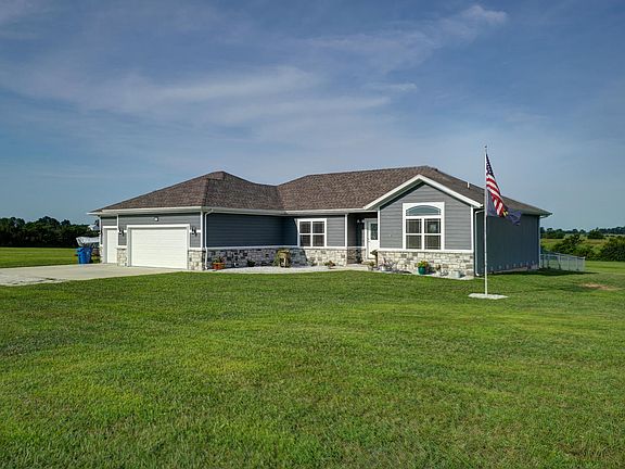 DREAM PROPERTY! MUST SEE!!! Expansive open floor plan and Spacious rooms. House and 5+/-manicured acres (horses allowed see restrictions), custom built home. 3 Bed, 2 Bath, 3 car garage featuring 9' ceilings, vault and double tray ceilings, high end finishes, 3/4'' thick 5'' wide, Natural Hickory hardwood flooring in Living/dining area. 12x24 tile flooring in kitchen/bathrooms and laundry and carpet in bedrooms. All granite counters The master suite is spacious with a door leading out to the covered patio and is just steps from the in ground storm shelter. The master bathroom has a large walk-in closet, double vanity and beautiful walk-in tiled shower with glass enclosure. Kitchen has lots of cabinets including a pantry, extra counter space and a massive 8' island with sink and drawers galore. Separate dining and breakfast area, covered patio for lots of entertaining and fenced area in backyard. Kitchen appliances stay with the home. Beautifully landscaped and seller just added evergreen trees that line the driveway. Don't let this one get away. Call me to schedule your showing.....hurry before you miss out!