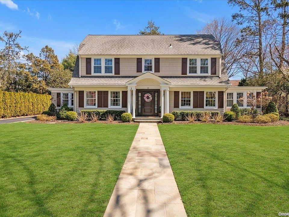 Perfectly situated on a prestigious road in the heart of the Estates, this stately Colonial uniquely combines the elegance of old-world charm with modern functionality, style and amenities. Superb detailing, skilled craftsmanship, quality renovations and generously proportioned rooms, all combine to make this the ideal home for enjoying your everyday lifestyle. The curb appeal begins with the long blue stone walkway leading up to a grand front entry portico with stately columns and new custom door and sidelights. With hardwood floors throughout, this home boasts a welcoming foyer with bridal staircase, oversized living room with fireplace and custom built-ins, banquet sized formal dining room and den/office, perfect for working from home. The newly redone state of the art gourmet kitchen is truly the heart of this home. It boasts white cabinetry, quartz counters, stunning stone backsplash, along with 6 burner Viking stove plus 2nd Viking oven. The sun-drenched eat-in area can accommodate seating for ten, an ideal place for informal dining. The first floor also includes a powder room and back hallway, off of which is a versatile porch, with covered roof, overlooking the large private backyard. All four bedrooms are found on the second level. The large primary suite, redone in 2020, features a full bath with multiple body shower jets. The full hall bath, also renovated in 2020, completes this level. On the third floor is a walk-up attic with bonus space, large walk-in cedar closet and tons of storage. The fully finished basement includes a rec room, laundry room, utilities room and storage, all redone with new flooring and new stairway carpeting. Additional features include new CAC, in-ground sprinklers, full house water filtration, alarm, and upgraded electrical systems. This splendid move-in ready residence sits on a large manicured 100' x 150' lot, with a detached 2.5 car garage with a walk-up loft. Convenient to all - schools, sport fields, LIRR and more, its location completes the entire package making this exceptional house your perfect dream home., Additional information: Appearance:Mint Plus,Interior Features:Lr/Dr,Separate Hotwater Heater:Yes