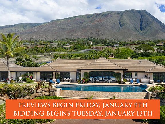 AUCTION - Seller offering property via online auction. Bid online beginning Tuesday, January 13th with a starting bid of $3M. Preview weekend begins Friday, January 9th to view this spectacular Launiupoko estate. “Blue Makai” is a world-class private estate reimagining luxury island living on Maui. Set across 8 pristine acres below the majestic West Maui Mountains and overlooking the revered Launiupoko Beach Park, this stunning retreat welcomes you through a grand porte-cochere and into an elegant foyer designed for seamless indoor-outdoor living. Sweeping 180° ocean, sunset, and neighboring island vistas frame every moment. Crafted to embody the Maui lifestyle, the residence features soaring vaulted ceilings and an expansive great room that flows into a gourmet dual-island kitchen with quartz countertops, premium appliances, and a generous walk-in pantry. Two exceptional primary suites each offer his-and-her closets; one showcases a private garden sanctuary with an outdoor shower, steam room, and double soaking tub. Completing the 6,500± sq. ft. of interiors are an office, wine room, lounge, and full-service laundry, along with two 3-car garages. This property is a residential condominium. The estate’s 2,000± sq. ft. of covered lanai, multiple gathering areas, and a 70± foot resort-style infinity pool and spa create an unrivaled setting for refined coastal living. Contact your favorite Realtor for terms and conditions of the sale and to schedule a preview.