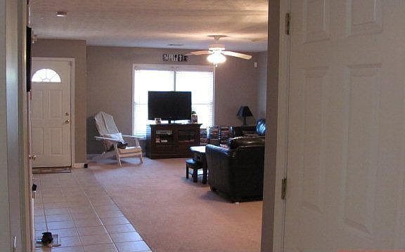 A two bedroom condo with very large bedrooms! The living space is all on the first floor and is open and spacious. The great room has a ceiling fan and is open to the dining area and the full size kitchen. All of the appliances included. A covered rear patio offers privacy and a small yard space. The rear of the property is fenced. The laundry room is large as well and the washer and dryer are included. Storage space and closets galore! The two bedrooms upstairs are large and each have a built in desk, a walk in closet and a full bathroom. This unit has an alarm system. The $50 per month condo fee includes the grounds maintenance, exterior insurance, pest control and garbage pick up. The Tiger transit is within walking distance.