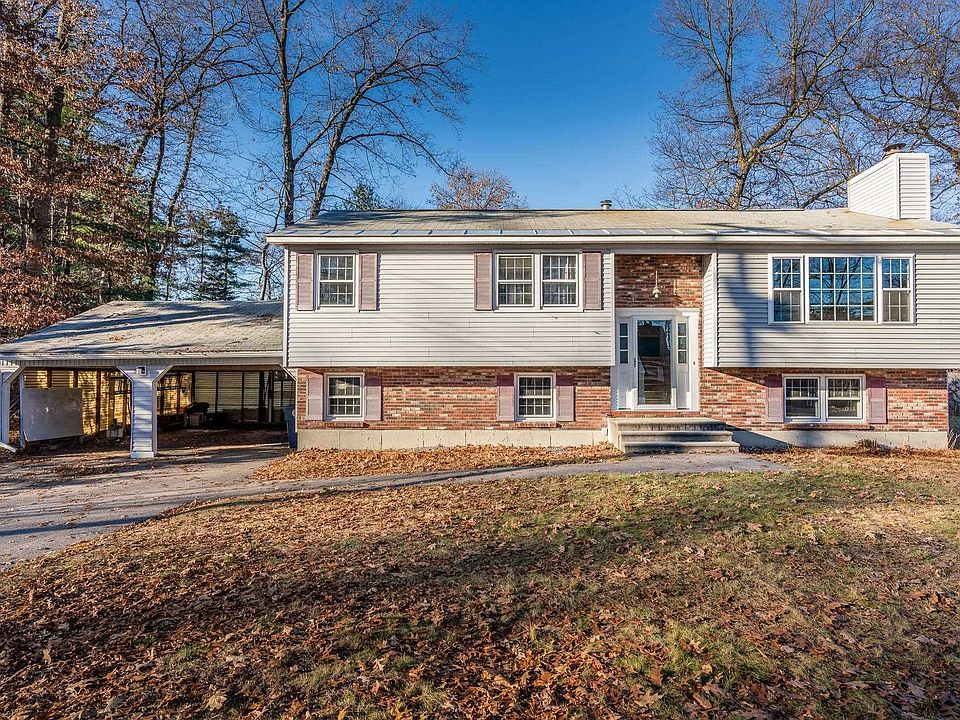 "Location meets Function in this Spacious Raised Ranch/Bi-Level Home." The Homes location is very close to shopping, Rte 3 and local conveniences. The Upper Floor Boasts a large eat-in kitchen with plenty of space and cabinets including a pantry, expansive living/family room with vaulted ceilings open to dining area helps create the open concept floor plan. A new Large Picture Window allows in beautiful natural lighting for a bright and cheerful living area.The Enclosed Porch offers many possibilities with slider off dining area.Large Full Bath is accessible from the Hallway as well as the Master Bedroom for an en-suite feel, all additional bedrooms are roomy and the hallway has a pull down Attic staircase for access to plenty of Attic Storage.The Lower Level offers In-law Potential with a combo full Bath/Laundry with like new original Tile Flooring for that retro feel.Family room features a Wood burning Brick Fireplace with mantel and is separated by a half wall and Wood beam for a den or exercise area.There is an office/study room as well as a potential 4th Bedroom at the end of the hall with closet.Storage Space is plentiful with Mudroom and Utility Rooms .The Oversized Lot is partially Fenced and great for pets and family enjoyment.The attached oversized Carport allows for 2 cars and storage and could be converted to a 2 car garage subject to local permits.