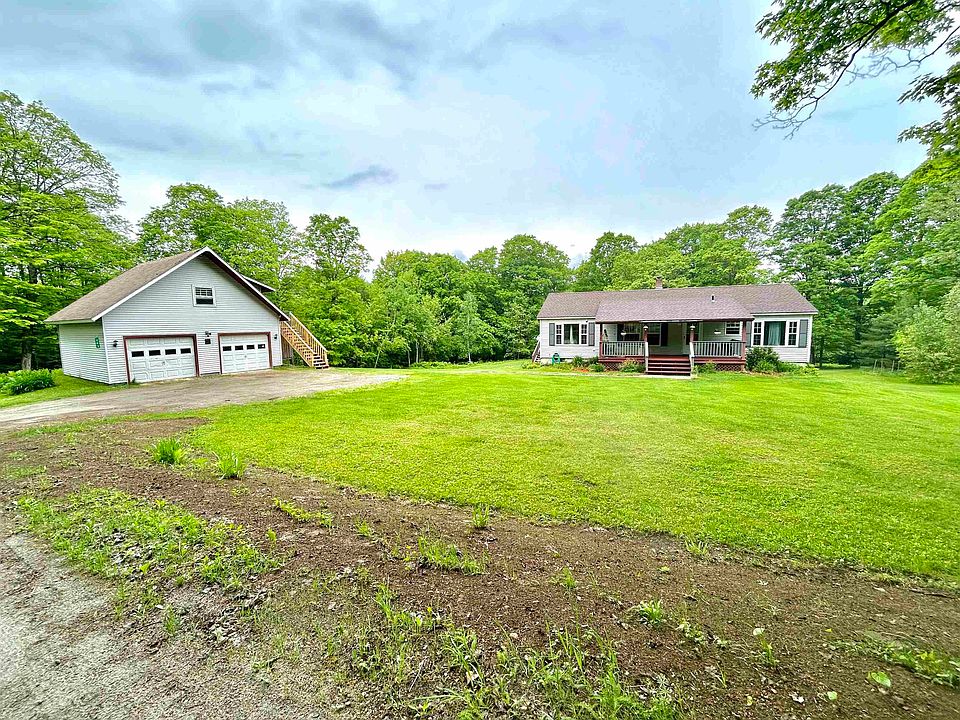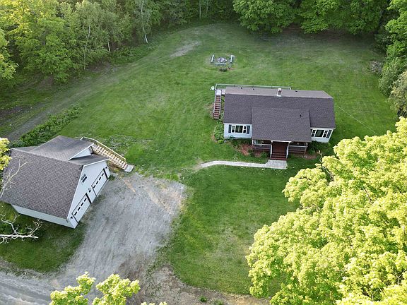Nestled on 10.3 wooded acres, this well maintained one level home promises modern living in a picturesque setting. The primary bedroom boasts a private full bath with jacuzzi tub, shower and walk-in closet. An open concept living and dining area seamlessly blends into the kitchen with extra countertop seating. Just down the hall are two additional bedrooms with a second full bathroom offering ample space for family or guests. In the lower level you will find a family room designed for both comfort and convenience, featuring a handy kitchenette, perfect for a quick snack or socializing at the bar top. A half bath adds to the functionality of the space. Enjoy your morning coffee on the covered porch or entertain on the large back deck that overlooks a beautiful, level lawn. Bonus space over the two bay detached garage has exciting possibilities of enhancement. Create a game room, hobby space, private office tailored to your individual needs or interests. Come take a look at everything this property has to offer!