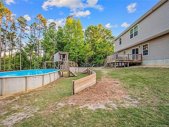 This is a one of a kind home in the conveniently located Starwood Community; perfectly situated at the end of a cul-de-sac w/almost an acre of land, this home is an ideal place to enjoy country living w/plenty of privacy while having the convenience of local shopping/dining, Ft Bragg and HWY 87, 295 and 95. Home features 4 full BR & 2.5 Baths; entering the home you'll immediately notice the welcoming foyer with beautiful dining room on the left; open floor plan with great room joining the large kitchen w/breakfast bar, stainless appliances, plenty of counterspace and extra large pantry behind stylish farmhouse door; upstairs you'll find a large loft and all bedrooms, large master suite built in custom farm style bedframe, double vanity, tiled surround shower and large walk-in closet; three additional bedrooms are up, out back you'll find an oasis for entertaining & plenty of storage and privacy; enjoy the pool on those hot NC summer days & explore your hobbies in wired workshop