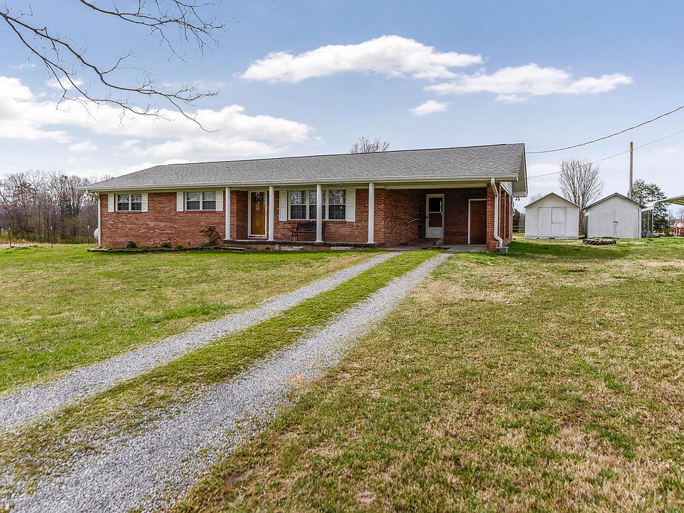 Charming all brick ranch style home built in 1968 offers kitchen / dining room combination. Spacious living room and 3 bedrooms. Wood burning fireplace in dining room, gas log fireplace in living room. All situated on an acre lot with adjacent 5.34 acre tract. Property being sold as a whole, as is to settle an estate. The 5.34 acres owned by heir is being combined with the home and 1 acre but could be sold separately.