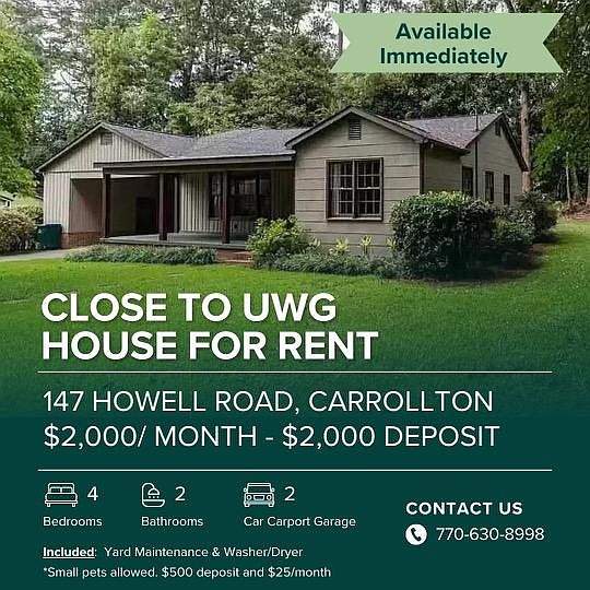 This 1624 square foot single family home has 4 bedrooms and 2.0 bathrooms. This home is located at 147 Howell Rd, Carrollton, GA 30117.