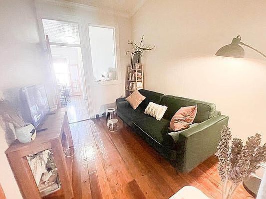 4 rooms railroad style, Renovated, high end, Eat in kitchen , granite countertops, hardwood floors, French doors, 2 closets, original fireplace, Heat hot water included. Best location in Greenpoint! Few steps to greenpoint G train India st entrance, ferry and shopping, 10 min to NYU hospital, in beautiful brownstone building. Share front court yard. Great location steps to Greenpoint G train or ferry 2 blocks away. Laundromat around the corner. One month broker fee.