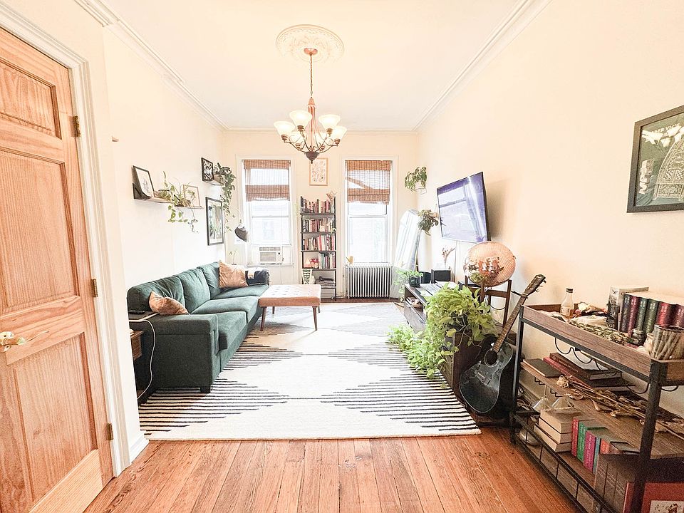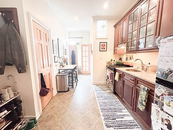 4 rooms railroad style, Renovated, high end, Eat in kitchen , granite countertops, fire place , hardwood floors, French doors. Heat hot water included. Best location in Greenpoint! Few steps to greenpoint G train India st entrance, transmitter park, ferry boardwalk and shopping, in beautiful brownstone building. Heat hot water included. Share front courtyard. Sorry No pets