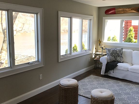 DIRECT WATERFRONT! Tranqil two bedroom home with loft in private water community . Many upgrades in this energy efficient house. Raised in 2007. Large kitchen with quartzite countertops and high end stainless appliances. Two new bathrooms with Kohler fixtures (2017/2018). Central AC (2013). Spray foam insulation throughout most of the house, attic and garage. Radiant floor heating on tiled kitchen flooring and 1st floor bathroom. Hardwood floors throughout main living areas and bedrooms. Custom trim, wall treatments and 4 panel wood doors with Baldwin hardware. California type closets. Anderson windows. Custom window treatments and shutters. All ceiling lighting is LED. Navien water system (2018). Low maintenance vinyl cedar shingles (2013). Roof (2009). Septic (2011). Large custom patio, fire pit (2014) and dock. Paved driveway (2016). Professionally landscaped by Shakespears garden. Very well maintained house. Nothing to do but enjoy the water! This house is part of an association. Association maintains roads and grounds for 60/mo. Homeowners maintain their own property.