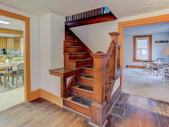 Incredible opportunity to own a charming farmhouse colonial in the heart of Richmond! This 3-bedroom home, built in 1900, offers a blend of historic character and potential. Just steps from Richmond’s beloved restaurants, cafes, parks, and elementary school, this home is priced to sell—perfect for adding your personal finishing touches! The home needs some work, allowing you to bring your vision to life while preserving its charming original details. With natural gas as the main heating source and triple-paned windows, the house offers an efficient starting point for any updates you choose to make. Enter through a covered side porch into a welcoming eat-in kitchen. The first floor features a dining room and living room with gas burning stove that's perfect for gathering and staying warm and cozy. Also features an enclosed porch and a half bath/mudroom for easy everyday use. Upstairs, the beautiful wood staircase leads to three bedrooms and a full bathroom. Minutes from the interstate and a 20-minute commute to Burlington, this is a unique chance to own a piece of history in Chittenden County. Don’t miss out on the potential of this gem!