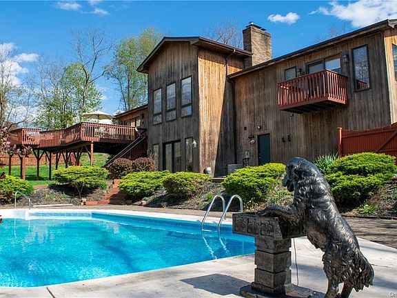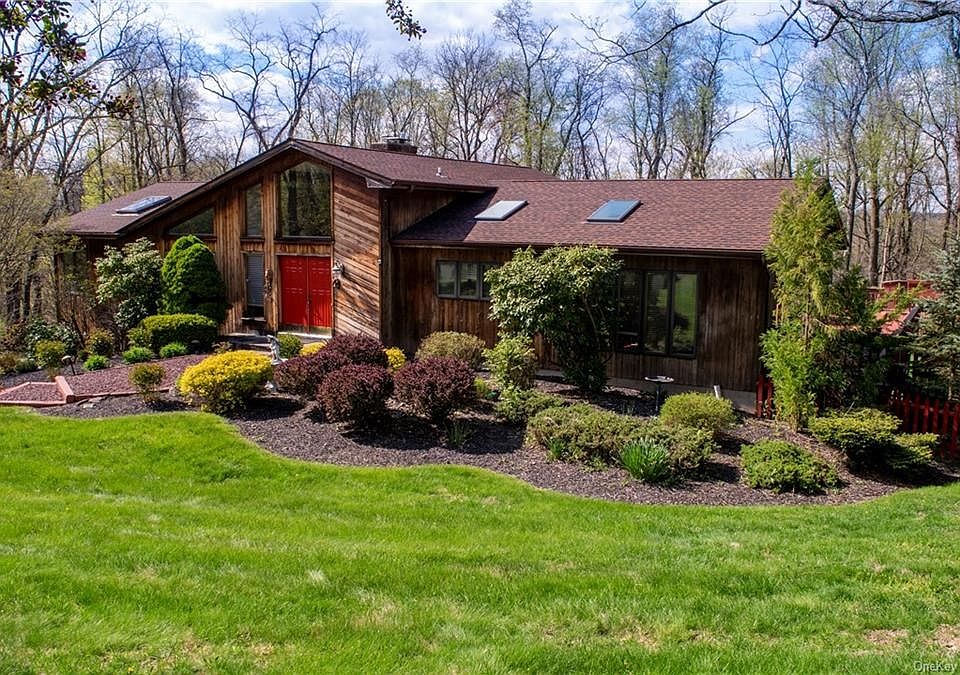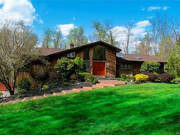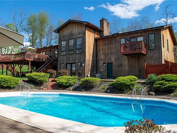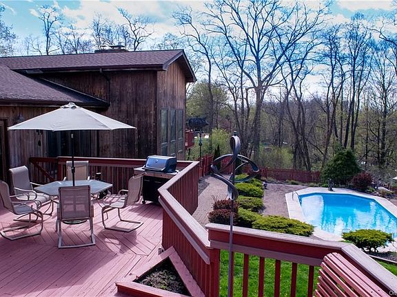 Impressive Custom Contemporary Ranch sitting on a perfectly Landscaped 1 acre property with 2 tier decking leading to an inground heated pool with complete privacy behind. Stunning double door entry foyer with cathedral beamed ceiling, step down into Living Room w/floor to ceiling stone fireplace, pellet insert & hardwood floors. Lg Eat-in Kitchen with vaulted ceilings, hardwood floors & stainless steel appliances. Formal Dining Room Vaulted ceilings & Skylights. Main floor Master with His & Hers California closets, full bath huge shower and soaking tub. Second Bedroom on main level w/catherdral ceilings & hardwood. Walkout lower level Family Room w/woodburning stove insert, 2 additional bedrooms, Full Bath, Office/storage, strong mother daughter possibilities. Great Location, minutes to Taconic, I84, 684, around the corner from the golf course and walk to the rail trail
