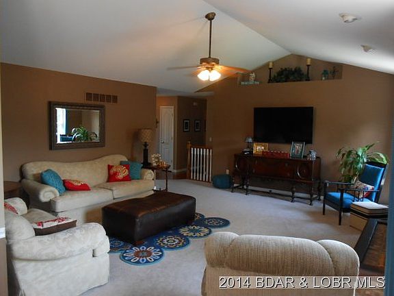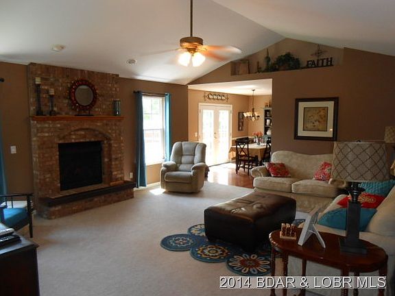 CHANGE YOUR LIFESTYLE...Very short walk to Community swimming pool and Tennis Courts, 10-12 miles of Hiking and Bike Paths (located just across the street), Robert Trent Jones Golf Course(less than 2 miles from your doorstep),plus Boat Launch Ramp to Lake Of the Ozarks is only half mile away. The home is convenient to Schools, churches, Restaurants, Hospital and shopping. Inside the home features spacious Living Room, Very large Family Room, Theater Room, Large Kitchen and dining area, Office, 4 Bedrooms and 3 Baths. The exterior construction is Brick and Vinyl siding. The property is nicely landscaped...with front and back yard areas. Check this one out today!