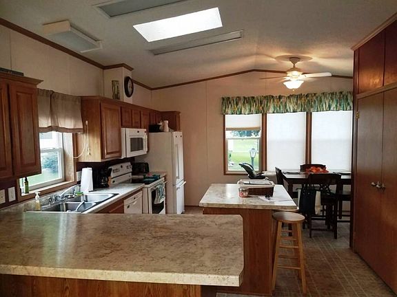 A very well maintained mobile home, only the 3rd owner. Walk into the kitchen with an island that has electric and natural light coming in the skylight. There are plenty of cupboards and counter space. Laundry is behind the closet doors. The master bedroom hosts a walk in lighted closet and master bath with skylight and walk in shower. The hall bath also has a skylight. There is a heated garage for winter convenience. Updates include: Microwave in 2019, furnace, and C/A in 2018, Maytag refrigerator, Maytag dishwasher, electric stove, under cabinet fan, countertop, and water softener in 2017. Roof has 50 year shingles and a warranty. The overhead garage door and opener are also newer. The carpet and linoleum in 2014, and water heater in 2008. Make is a Schult measuring 76' x 16'. The mobile home tax is $108.00 a year and the garage tax is $142.70 a year. Lot rent is $275.00 a month with $10.00 each additional persons. Buyers must be approved by Knollwood Estates Park managment. Directions: Left on Tanglewood, Right on Knollwood, Right on Knollwood again.