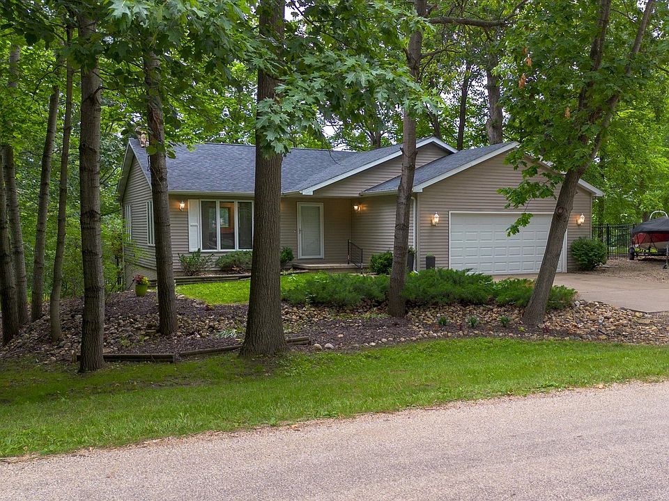 Excited to present this 3 bedrooms, 2.5 bathrooms lake house which boasts an open layout, modernized bathrooms, abundant natural lighting, exclusive water access, and suitability for hosting multiple families. Nestled in a serene inlet, this property offers protection from boat traffic and a tranquil spot for swimming, lounging, and fishing. Yet, it's only moments away from vibrant activities, including the community beach, boating, tubing, and water skiing. The home's interior is equally remarkable, with a kitchen that serves as the focal point, boasting ample freshly painted maple cabinetry, stainless steel appliances, extensive countertop space, and a breakfast counter. Enjoy culinary adventures with a scenic backdrop of the forested lakeside. The kitchen flows into a generous dining space, ideal for festive gatherings with family and friends. The adjacent living area features a towering stone hearth, wooden beam ceilings, and plenty of space to sit and relax. The main level also hosts a master suite with deck access for lake views and a luxurious bathroom with a glass-enclosed shower and standalone jetted tub, creating a spa-like retreat for unwinding post-lake fun. The lower level will delight you and your guests with additional entertainment, gaming, and relaxation options. Flooring recently updated. It includes two bedrooms, a large bathroom, fireplace, and a roomy recreation zone. Step out to the patio and fire circle, offering numerous seating spots within a fenced area for peace of mind, keeping pets and little ones safely nearby. Enjoy your private dock, roomy enough for your vessel, showcasing splendid lake panoramas and a prime view of the seasonal pyrotechnics! The heated attached garage features workstations and accommodates vehicles and lake gear. This exceptional waterfront abode is perfect as a weekend retreat, permanent home, or rental for added income. Discover the delights of Lake Thunderbird: a private beach, 2 playgrounds, community center, swimming pool, tennis, pickleball, mini-golf, picnic grounds-all a brief stroll from your doorstep. Plus, boating, fishing, nature paths (Starved Rock is just a 40 minute drive), and year round community events.