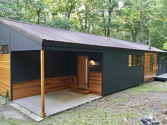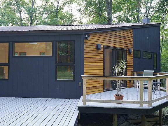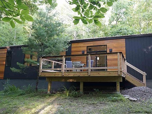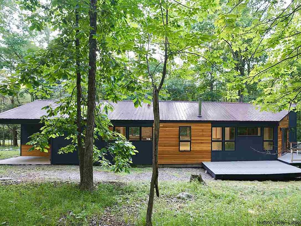 Escape to the Catskills! They are Hot!!! Welcome to Hy Vly,a private, ecologically focused, land owners association, on a dead end road a mere 1.5 hrs from the GWB. Soak in the smell and sights of tall pines and wild flowers as you drive up the long, community maintained gravel road, well off a quiet town road and you will pass the original 19th century Lang Farm barn, endless 200 year old stone border walls (will make you wonder how they engineered them in this rugged terrain) and spring fed pond as you enter your private land. You'll never hear a car, truck, siren or horn...Just the sounds of nature.. Extensive renovation completed by one the best builders in the county May 2020 Modern Industrial design, Western Red Cedar siding matched with beautiful modern black wood vertical siding. High quality material used throughout the home,2X6 exterior studded walls,all new high R-value insulation ,all lighting is new LED fixtures with all new wiring and many, many outlets...high efficiency Pacific Energy wood-burning stove and Runtal euro-style, energy-efficient steel radiators.. no cheap baseboards here.ALL New flooring and tile throughout the house.Ceilings, walls and new deck pre-wired for muti-zone speakers and so you can have chill trip-hop by the fireplace and Bon Jovi on the deck. High ceilings with exposed steel I-beams, open floor plan, will wow and be the envy of your guests when they walk in to the impressive chef's kitchen/grand room. 6-burner gas center island stove top to talk to your guest while searing a steak or sea scallops with fresh herbs and vegetables from the numerous farms minutes away, or flambé a dessert ,surrounded by black leathered granite countertops. All new SS appliances, Fridgidaire Pro fridge and dishwasher, Samsung Double wall oven, Kenmore Elite Wine refrigerator, Thor 6-Burner Gas Stovetop..41 New Marvin Windows to let sunlight,views and fresh air in to the living space... There's an additional 3 sheds, one hand built by a local carpenter that is rough-wired for electrical so could be used as a studio or workshop,one basic one for yard tools, lawn mowers, etc and a large woodshed... Cozy den to curl up and watch a movie or marvel in the peaceful quiet and song birds as you have your morning coffee or glass of wine and watch yet another amazing sunset on one of the houses two decks, or go plunge into the mountain fed swimming hole down the road on a hot summer afternoon or just stroll down the quiet road to one of the ponds with a glass of wine and watch the beautiful sunsets as Dragonflies and Butterflies give way to Fireflies, Crickets, Owls and the soothing sounds of Tree and Bull Frogs...Magical!.... Two en suite bedrooms with full bathrooms with large walk-in showers and even a water closest positioned on opposite ends of the house for privacy. Lots of storage and closets ready to customize to your specs and a loft to store your city stuff House is settled on 4 wooded acres over two deeded lots so you will be assured privacy and quiet forever. You are also close to some of the nation's best wilderness preserves minutes away. Mohonk, Minnewaska, Sam's Point, Vernooy Falls,where you can hike or mountain bike to numerous lakes and waterfalls or try your hand at rock-climbing, The Gunks are world renown for there muti-skill level ascents,and the famous "Labyrinth and Lemon Squeeze" Numerous culinary delights are also nearby and the wonderful villages of Woodstock, High Falls, Kingston and New Paltz. Arrowood Farm Brewery, Bell's Christmas Tree Farm and Westward Orchard are just down the road. House is wired for high-speed Spectrum cable which is rare that you get technology in such a special peaceful setting, so working at home is possible and Smart Home-ready! House also has a Generac whole house generator, only one on the road, in case you lose power life goes on as it should! NO DRIVEBY'S PLEASE! Appointments required...it is a private community.