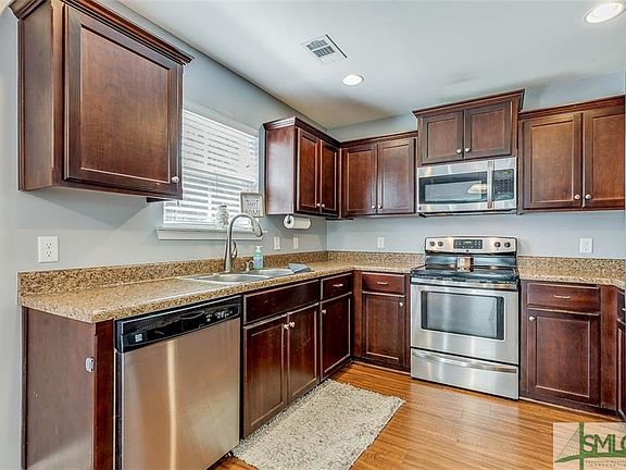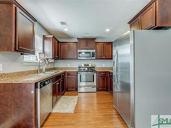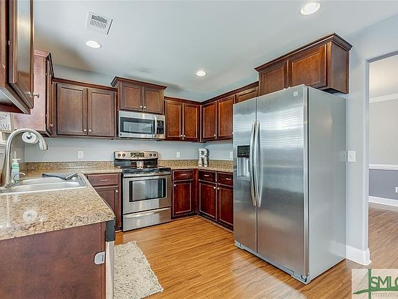 Looks like new! Move in ready! 4 bedrooms, 2 1/2 bathrooms PLUS bonus/office/study. All bedrooms upstairs. Bonus/office/study on main level. Cute front porch, foyer entry, Luxury vinyl plank flooring through main level areas and all windows have white faux wood blinds already installed. Kitchen is open to the breakfast room, and great room. Just off kitchen is a formal dining space as well. All stainless steel appliances included in sale. All bedrooms on second level along with the laundry room. Master bedroom has great closet space, and attached bathroom has double vanity sinks, separate tub and shower. Bedrooms are all carpeted and clean with fresh paint. The yard is sodded with sprinkler system. Attached 2 car garage with auto remotes. There's a extra large 24 X 26 carport for covered storage as well as a 12 X 20 storage shed with electric that can be connected. Convenient location to Pooler, Savannah, or Statesboro. The Middle and High School within a few miles!