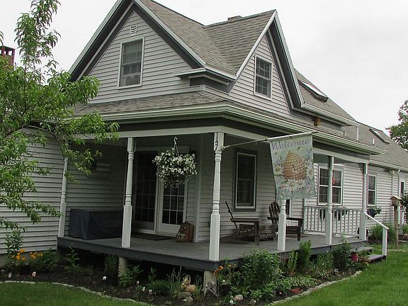Traditional 1900s farmhouse with renovations and addition in 1992 and 2009. The original homestead, established in 1901, features a farmhouse of that era sited on 2.1 acres. It is bounded by more than 10 acres of open fields and mixed woods. The well established gardens feature vegetables, herbs, ornamental grasses, trees, and shady spots. House was renovated in 1992 with extensive basement repair. At that time, many of the doorways were widened to allow access to the master bedroom, main bathroom and throughout the length of the first floor for wheelchair or walker. Present owner built an addition to connect the main house with the garage in 2009. At that time, plumbing and electrical brought up to code. Much of the ambience of the farmhouse remains with a large, country-style kitchen, wood floors, windows overlooking the property, original woodwork around windows and doors and a spacious feeling. This home offers first floor living with master bedroom and laundry. A farmer's porch encircles the front of the home with a small deck off the large mudroom in the back. A newly established firepit is located near the rear deck.
