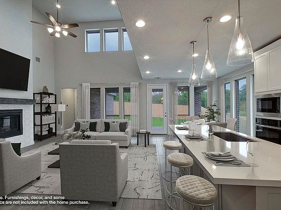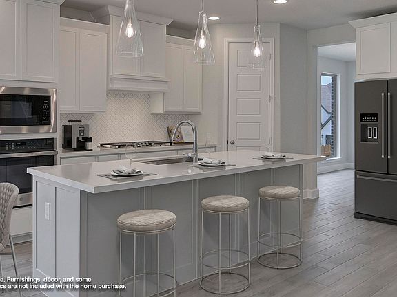 READY FOR MOVE-IN! Home office with French doors and formal dining room set at two-story entry. Kitchen and morning area open to two-story family room with a wood mantel fireplace and wall of windows. Kitchen features corner walk-in pantry, 5-burner gas cooktop and generous island with built-in seating space. First-floor primary suite. Dual vanity, freestanding tub, separate glass-enclosed shower and large walk-in closet in primary bath. A second bedroom is downstairs. Upstairs features a game room and two secondary bedrooms. Extended covered backyard patio. Mud room off two-car garage.