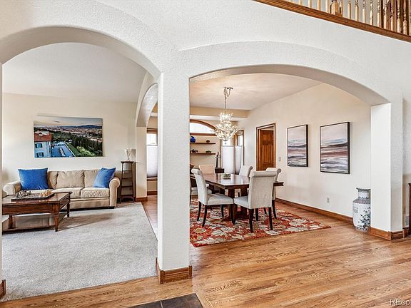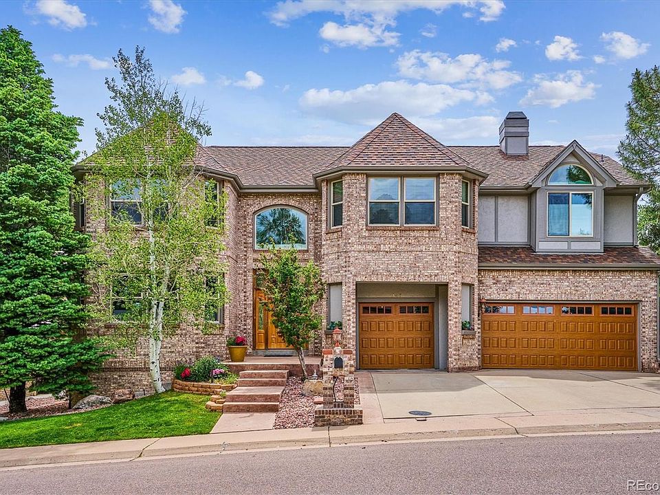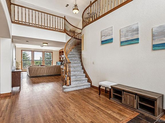 Welcome to the highly sought-after Mesa View Estates! This magnificent home offers an impressive 5 bedrooms, three with a private en-suite bathroom, 2 offices, and 6 bathrooms. As you enter the large foyer, you'll be greeted by the sweeping staircase and soaring vaulted ceilings. The main floor is an entertainer's dream, boasting a gourmet kitchen with double ovens, a walk-in pantry, a large kitchen island, and top-of-the-line stainless steel appliances. The kitchen flows into the informal dining area, which opens onto the outdoor decks. The main level also includes a formal sitting area, a formal dining room, a living room with a double-sided fireplace shared with an office that features beautiful built-ins and could be converted to a main floor bedroom, a three quarter bathroom, and a large laundry/mud room for added functionality. Upstairs, the second floor hosts the spacious primary suite retreat, complete with a luxurious 5-piece bathroom, his and her walk-in closets, a private sitting area, and sliding doors that lead to a deck with breathtaking views. There are three additional bedrooms and two bathrooms to complete this level. The expansive walk-out basement features a movie/media room with projector, a large family room, a guest room with an en-suite bathroom, a second bedroom or study, a half bathroom, and a storage room. The stunning yard is an outdoor oasis, complete with a gas-plumbed fire pit, beautiful decks, flower gardens, and a flagstone patio. The three-car garage provides ample storage space, while the top-of-the-line leased solar system with two storage batteries ensures low energy costs and peace of mind during power outages. New HVAC system. Close to neighborhood park, a short walk to trailheads at Green Mountain, and access to the Foothills Recreation Center. This incredible location offers easy access to Golden, Denver, I-70, 6th Avenue, Denver West, and the mountains, making it the perfect home for enjoying everything Colorado has to offer.