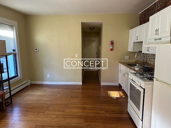 **Price Drop** Updates include a modern kitchen, hardwood floors, an exposed brick wall, and a tiled bathroom. This open-concept living space also features heat and hot water included in rent! - Includes heat and hot water! - 12-month lease - Deposits: First month, last month & security deposit - No broker fee - Cats and small dogs are allowed per owner approval. (breed restrictions apply)