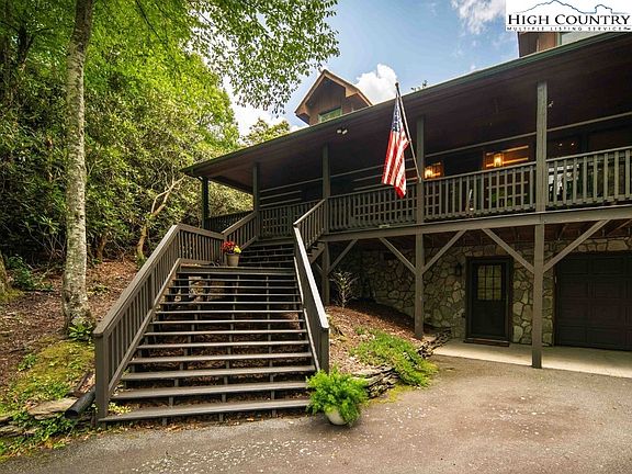Charming log home in the beautiful, gated community of Arrowhead, just 4 miles to Blowing Rock. Nestled among lush Rhododendron and situated atop a rolling knoll, this meticulous home can serve as a mountain retreat or full-time residence. Beautifully updated and stylishly furnished, enjoy newer SS appliances, whole house LED lighting and fixture upgrades, Navien tankless water-heater, radiant heat tile floors and towel bar in the primary en-suite. The heated, oversized garage includes a large work-space. The open floor plan on the main showcases gleaming hardwood floors, lovely stone gas fireplace, classic tongue and groove ceilings and an abundance of natural light. The expansive, multi-use loft offers views of colorful flora and evergreens in the rear yard. The sprawling back entertainment deck, which flows seamlessly from the wrap around, covered front porch, is a secluded oasis. Long, flat driveway leads to garage; gas-line directly hooked-up to grill and space heater on back deck. This log-cabin retreat is a rare combination of style and comfort! Fantastic location near the Blue Ridge Pkwy, Moses Cone and Bass Lake ... shopping, dining, and all the mountain adventures you can imagine! No Short term rentals allowed.