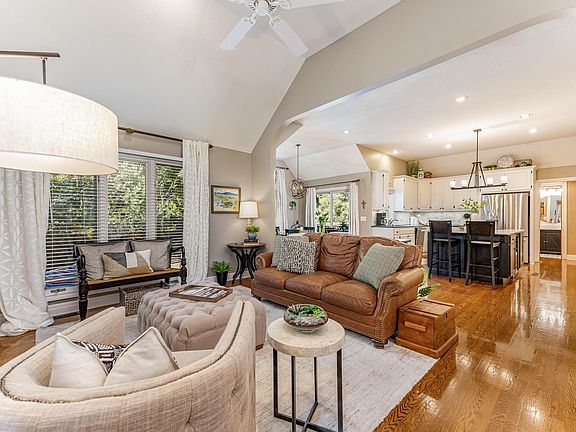 Traditions will come alive in this six bedroom family retreat! The distinguished entry includes soaring ceilings and large, sun-filled rooms. Effortlessly entertain family and friends among the backdrop of neutral decor, white woodwork and gleaming wood floors. This custom floorplan includes an arched opening into an oversized kitchen - complete with a large eat-in space, plus a large formal dining room! The kitchen upgrades include an over-sized island with white quartzite countertop, marble tile backsplash, easy access to laundry room, and a stunning 1/2 bath for guests to appreciate! The extra touches continue throughout with fresh neutral paint colors, updated bathroom tile and lighting and plenty of room to spread out. The basement family room boasts ample space for family gatherings, complete with a fireplace, wet bar, microwave, and extra fridge space. The tree-lined backyard, composite deck, stone patio and firepit, and mature landscaping truly do complete this special home in a remarkable way! Impeccably decorated with the perfect modern touches help to make this home truly unforgettable!