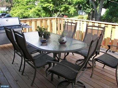 Fantastic Westbrook Park End Unit will just WOW you with upgrades and special features. On the exterior is a newer roof (5 yrs) new fenced Patio windows (3 yrs) refinished Deck with retractable awning off street parking for up to 4 cars and a generous fenced in yard with 2 sheds. Inside the home you will find a stunning expanded Kitchen (3 yrs) with granite counters 42"" maple cabinetry stainless steel appliances and beverage center-hardwoods over cork in the Kitchen and Dining Rooms formal Dining Room with sliders to Deck and Living room with newer carpet. On the upper level are 3 Bedrooms and new ceramic Bath; lower level has finished Family Room area full tiled Bath storage Laundry new heater and hot water heater (2014) and A/C (2004). Walking distance to a park transportation schools churchs and shopping; easy transition to I-95 Blue Route and the airport. Lots of privacy- backs up to open space with trees and park. Welcome to your new home!