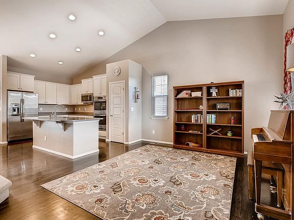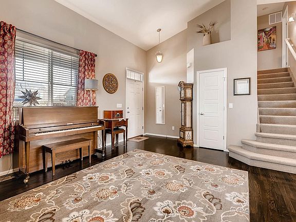 MOVE IN READY!!! This beautiful home is located in Traditions and has 3 bedrooms and 2.5 bathrooms. You will enjoy cooking in the beautiful kitchen with ample white shaker cabinets, low maintenance grey quartz countertops, dark solid hardwood floors, and matching stainless steel appliances, including a double oven. Upstairs you will find the master bedroom with beautiful 5 pc master bathroom and walk in closet. Laundry is a breeze with convenient access to the master closet. You will also find 2 additional bedrooms and a full bath upstairs. Enjoy our wonderful Colorado weather in the beautiful backyard. A large covered patio perfect for entertaining and 4 raised planters perfect for the gardener. The unfinished basement is awaiting your final touches! Enjoy your first summer in Traditions at the community pool!