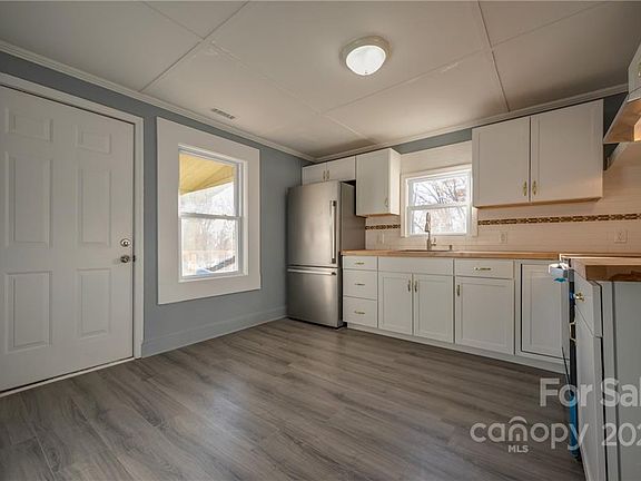 Cute Home located in Rutherfordton!!! This 2 bedroom 1 bath home has been freshly painted inside and outside, new flooring throughout, has a new kitchen and updated bathroom, a large living room, a convenient laundry room, a circle driveway, and a covered front and side porch. The updated kitchen offers new flooring, cabinets, wood countertop, stainless sink and faucet, and stainless appliances. The updated bathroom offers new vanity, countertop, faucet, tile floors, tile shower, and a shower door. New heat pump, roof, wiring, plumbing, and windows have been updated. The nice half acre lot has plenty of room to add a garage and fencing. Walking distance to downtown Rutherfordton with shopping and restaurants. Close proximity to hospital and healthcare facilities.