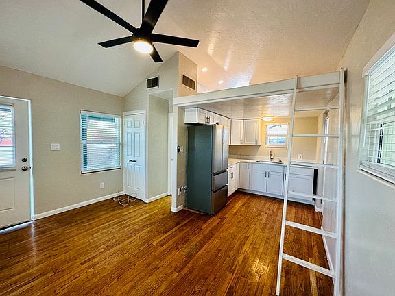 Charming cottage-style apartment located in prime location in Tucson. This cozy studio apartment features vaulted ceilings, a small loft area, and a fenced yard, providing a unique and inviting living space. The newly renovated kitchen comes equipped with a refrigerator and stove top for all your cooking needs. Enjoy the convenience of off-street parking and relax on the porch while taking in the beautiful surroundings. With blinds and a ceiling fan included, this apartment offers comfort and functionality. Bathroom remodeled with high end tile walk in shower. Plenty of shelfs and storage throughout your new home. $50 monthly extra for water, sewer, trash (mention address) Equal Housing Opportunity. Fort Lowell Realty & Property Management. This property allows self guided viewing without an appointment. Contact for details.