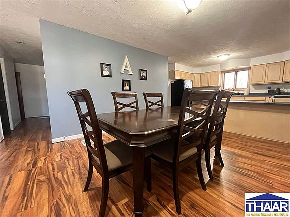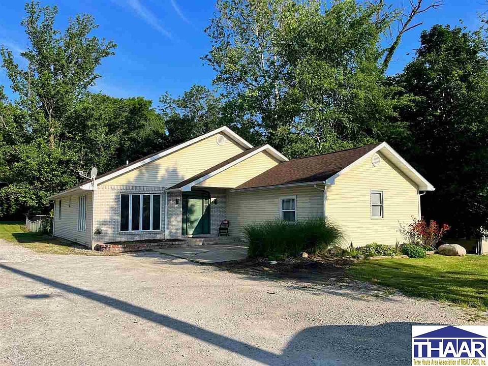 Check out this 4 bedroom, 2 bath Ranch situated in rural West Terre Haute! Located within walking distance of West Vigo, this ranch style home is situated on 1 acre! As you enter the front door, the inviting entryway leads to the open dining area and kitchen. The kitchen is spacious and features an abundance of cabinets and bar seating. The previously attached garage has been converted into an oversized living room and separate office/den. The primary bedroom features a private bath, walk in closet, and access to the rear deck/back yard. There are 3 more bedrooms on the main floor that share a large hall bathroom. The semi-finished walk-out basement features a flex room perfect for teen hangout, man cave, work-out room, or hobby room! The rest of the basement is dry/unfinished and serves as the laudry area, mechanicals, and storage! Outside, the multi-teared rear deck overlooks the fenced in yard and storage building! Call/text a local agent to find out more or schedule a tour!