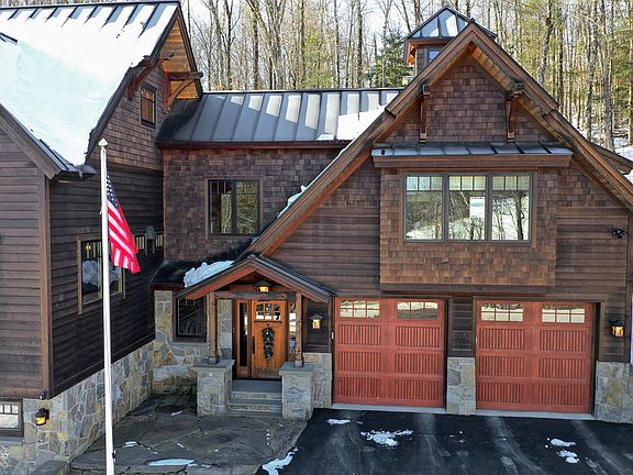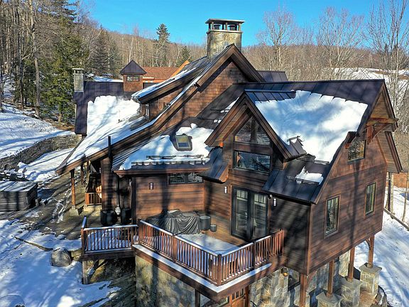 A timeless Okemo Mountain Timberpeg home located only steps away from the ski trails. Constructed with the finest materials in 2011, this custom designed residence exudes warm ambiance and a wonderful environment to share with family and friends. After a day on the slopes, relax in the hot tub on the heated stone patio, prepare a meal in the open gourmet kitchen and enjoy a glass of wine in front of the stone fireplace. There is ample separation of space on three levels with most rooms providing views of the ski slopes. The great room is truly “great” and features hand-crafted burled wood cabinetry with hammered copper counters, a vaulted ceiling with beams and backlit cupola. Other quality details include hardwood flooring, central air conditioning, a glass enclosed sunroom, heated driveway, custom iron detailing, fir doors, Vermont made Clear Lake Furniture, walk-in pantry, an awesome mudroom and more. See video tour for a walk through. Comfortable luxury awaits you!