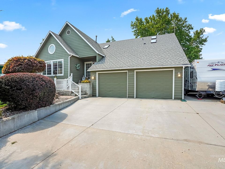 Experience the beauty of this well cared for split level home. Designed for hosting; the spacious kitchen overlooks the well lit sitting room and front entry. Enjoy both kitchen and private master bedroom access to your gorgeous covered patio, leading to an artfully manicured and fully fenced backyard. Below grade square footage is fully finished with guest bath, wet bar setup, vinyl plank flooring, and private access via the garage. Enormous driveway offers ample room to park your recreational vehicles with external power outlets and no pesky CC&R restrictions. Skylights, porthole windows, and below grade windows flood this lovely home with warm cozy light.