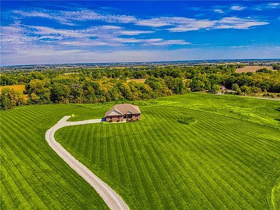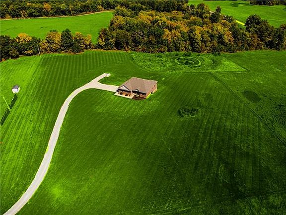Enjoy Peaceful Country living in this Immaculate home, only 4 years old. Sitting on 5.3 acres, this All-Brick Ranch Home features 3 bedrooms and 2 baths on the main floor and 1 Bedroom in the partially finished basement. Gorgeous, dark, hardwood floors throughout, with ceramic tile in the baths.The Spacious Kitchen has it all: Custom Cabinets, Granite Countertops, a Range/Oven an additional Oven with Microwave above...all stainless steel Appliances stay. Dining Room features a private balcony as well, to sit and enjoy an amazing view and Sunsets. Full, walk-out basement is partially finished and already studded for an additional full bath, ready to be completed. This home truly has it all and is move-in ready, to make its next Family just as happy as the current one!