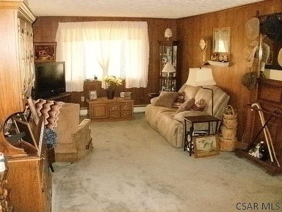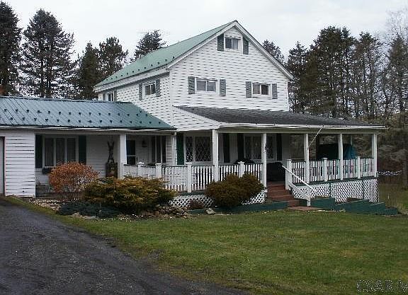 Peace and quiet await you at this 2+ story 3 bedroom, 2 bath farmhouse situated on nearly 5 acres. A small stream runs the length of the property. House offers an eat-in kitchen, 2 living areas, a bonus den/office room, a 2 car attached garage, and large covered wrap around porch.