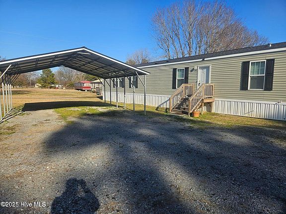 Beautifully kept 3 Bedroom 2 full bathroom singlewide on an acre of land out in the county between elm city and Pinetops! The manufactured home is 1,216sqft (16'x 76') Featuring a 2-car metal carport with a gravel driveway. This home comes with a modern and very clean interior. Stainless steel appliances, LVP flooring with carpet in the bedrooms and closets. Large Deck on the back of the house for gatherings. 10'x 9' patio with an awning. Enjoy a 30'x30' Wired Building w/ plumbing already installed. This building was previously used as a garage, but offers a lot of potential as either more living area if it were finished or as it sits is a very spacious Storage Building or even a Mancave!