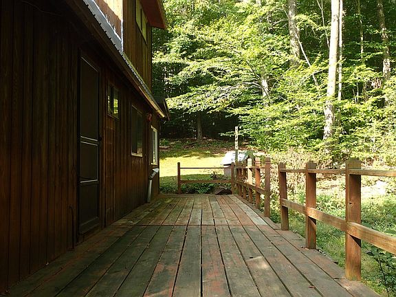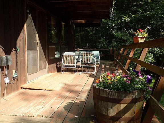 Did you ever wish you could live in a tree house? That's what living in this house feels like, but you get to keep your feet on the ground! Less than 10 minutes to downtown Oneonta and the colleges with OVER 6 ACRES of privacy, this could be your little slice of heaven. This 3-BEDROOM, 2.5-BATH home let's you snuggle in during the cold weather with a wood-burning FIREPLACE and a WOOD STOVE, or soak up the sun sitting on the MASTER BEDROOM BALCONY or huge WRAP-AROUND DECK. All the big-ticket items have been replaced: a metal roof was put on the house (2004) and garage (2011), the septic system was replaced in 2011, the boiler was replaced in 2004, the water heater 2006, and the well pump in 2013. On top of all that, there is an entirely SEPARATE GARAGE with two big bays for everything else you need to store or use it as a workshop. Above the detached garage is a ONE-BEDROOM APARTMENT with a private, large balcony that you can use as an office, guest suite or start renting out for extra income as soon you make this house yours! Parking near the house provides ground-level access to a ramp and inside there is a custom stairlift to the second floor designed to be completely unobtrusive. It feels like you are entering a retreat every time you drive up this home's driveway! You have to come experience it for yourself!