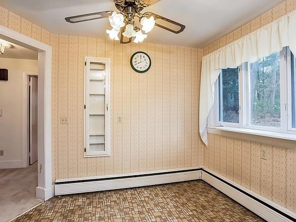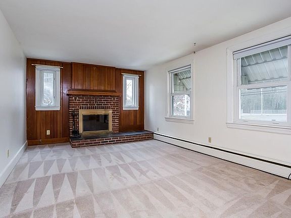 Charming two bedroom cape set on 2.8 acres! Original country kitchen with gas range, updated windows, and small dining area. Spacious living room with wood burning fireplace.The master bedroom has two closets, full bath on main level plus additional bedroom. The huge loft upstairs makes all the difference, and could be used for a kids play room, home office or bonus family room. Carpets were just professionally cleaned! New roof completed in 2016, newer heating system, and brand new electric panel. Full basement, dry, with high ceilings and bonus walkout storage area. Great location!! Just minutes to schools, highway, and commuter rail.