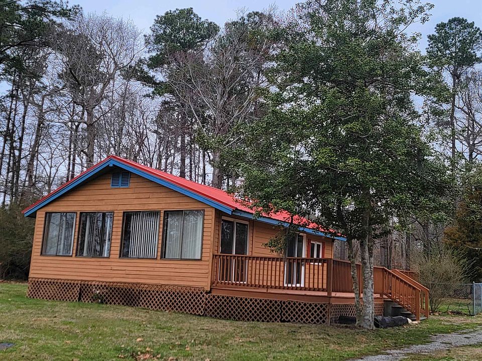 Welcome to your dream waterfront community retreat! This charming and renovated 2 bedroom, 1 bath bungalow is nestled on an impressive double lot with breathtaking water views that will leave you in awe. This home is adorned with character throughout, offering a spacious living room with water views, and vaulted wood ceilings with wood beams, that creates an open atmosphere. Recently a wood-burning stove was present, only removed to allow for more space. Therefore, there is a convenient hook-up for added warmth and ambiance. (wood stove does convey) Double doors beckon you into a delightful sunroom, with exceptional water views, complete with glass slider doors that connect to an expansive deck, providing a perfect ambiance for enjoying those tranquil water vistas. Renovated throughout, including all-new kitchen cabinets, countertops, and appliances. Completely renovated bathroom, a brand-new metal roof, HVAC system, flooring, and stackable washer and dryer to ensure modern comfort and efficiency. The adventure extends beyond the home, with a generous fenced-in backyard offering both privacy and security. There are numerous sheds with electric, including a 2nd refrigerator. Create your own ''She Shed'' or ''Man Cave'' at this whimsical homestead. Located in a quiet waterfront community, and walking distance to the boat ramp and park. You'll have exclusive access to a range of amenities. A community clubhouse offers a swimming pool, kiddie pool, and a snack bar for warm summer days. Tennis courts, four boat ramps, a community pier, a park, basketball court, and baseball field provide endless opportunities for outdoor recreation. Each lot is a spacious 0.28 acres, ensuring ample room for all your dreams to unfold. Don't miss the chance to make this idyllic waterfront haven your own. Schedule a viewing today and let the tranquility of this special property captivate you.