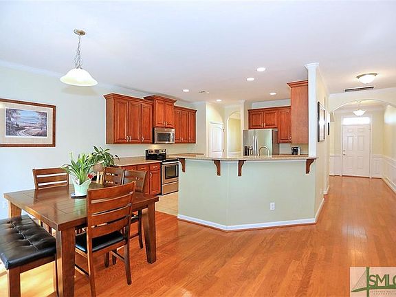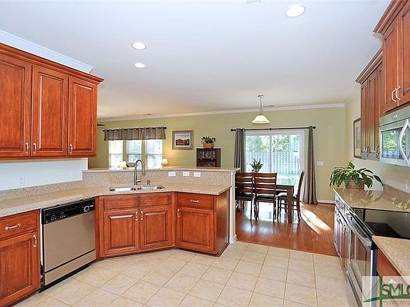 Arrive to this covered front porch with your rocking chairs. Front entry way with immediate access to formal dining area. Kitchen abounds with cabinet and counter space. Granite counter tops throughout home. Generous breakfast area and open bar area overlooking living room. Quaint office space and 1/2 bath complete the main living area. Hardwood flooring in all living areas on main level and tiled kitchen and baths. Hardwood stairs lead to your loft area and separated bedroom area. Master bedroom has private bathroom with garden tub, separate shower and double vanities. Across from the master and through the upstairs loft is access to your guest bedrooms. Guest bathrooms has extended vanity. Laundry room located upstairs. Fenced in back yard with extended patio and garden boxes. Close proximity to Pooler Parkway, I-95, I-16, Airport & Gulfstream. Shopping, Grocery Stores and Entertainment are just minutes away.
